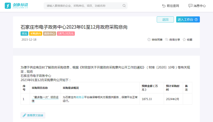 马上就要进入2024年了,新年开始又有哪些新的政务云项目即将启动招标呢?剑鱼标讯为您盘点2024年1&2月政务云招标项目。
