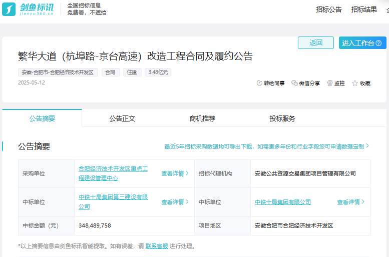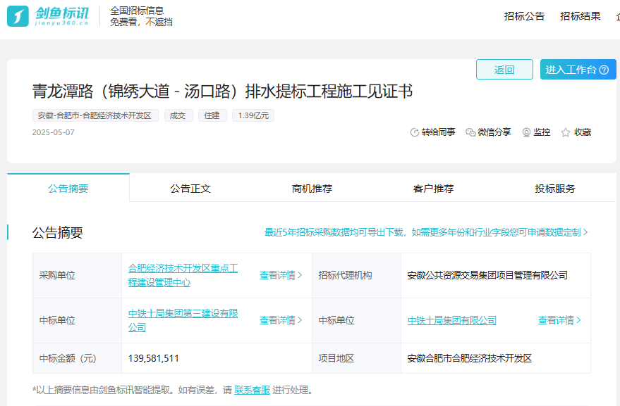 招采进度:通过剑鱼标讯数据分析,该项目在2025年3月27日发布招标公告,于2025年5月7日发布中标结果。