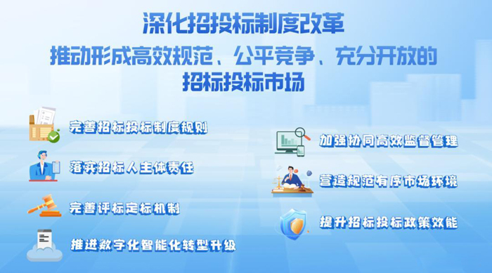 6.营造规范有序市场环境方面,明确要严厉查处招标投标违法活动、持续清理妨碍全国统一大市场建设和公平竞争的规定及做法。提出持续开展招标投标领域突出问题专项治理,推动招标投标纠纷多元化解,开展招标投标法规政策文件专项清理等举措。
