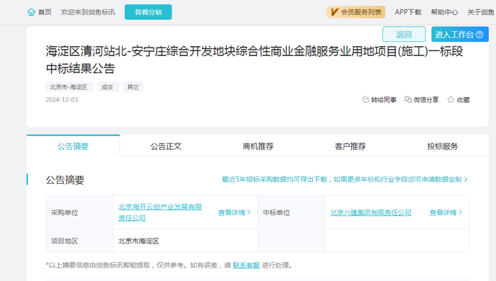 招采进度:通过剑鱼标讯数据分析,该项目在2024年9月29日发布了招标公告,于2024年12月3日发布了中标结果;