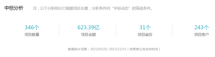 根据剑鱼标讯不完全统计,2023年,中国建筑第二工程局有限公司中标项目金额达到623.39亿元,中标项目数量达到346个,覆盖全国31个省份,主要集中在北京、上海、广东、山东、江苏、河南、安徽省境内,中标总金额超过400亿元。客户订单集中在建筑和金融领域,占比超过68%。