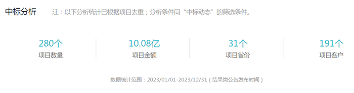 根据剑鱼标讯不完全统计,2023年,杭州海康威视系统技术有限公司新签合同额达到10.33亿元,中标项目数量达到119个,覆盖全国24个省份。主要集中在浙江省,其次是云南省和黑龙江省。2024年一个项目几乎等于2023年全年的新签合同额,对于杭州海康威视来说,2024年一定是业务高速增长的一年。