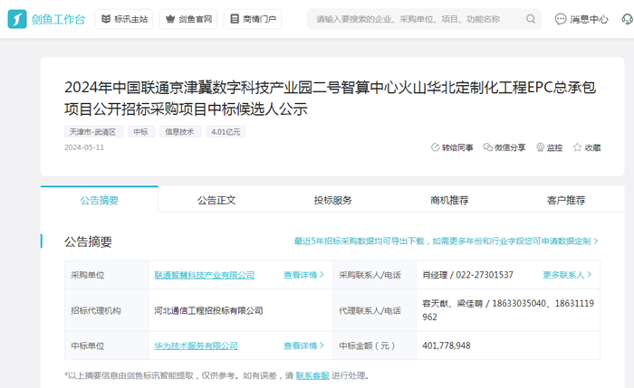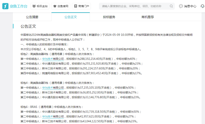 华为作为一家技术性公司,预计对于上述物资的采购依赖度会很大,或者会将项目采用分包的形式直接提供给相应的供应商。如果您是上述物资的供应商,或者可以提供相关服务,请你及时关注华为公司后续的采购动态。您也可以通过剑鱼标讯获取项目关键人信息,及时跟进和接洽。