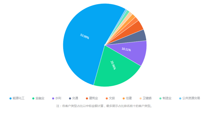 根据剑鱼标讯不完全统计,2023年,中国电建集团华东勘测设计研究院有限公司新签合同额达到473.37亿元,中标项目数量达到1040个,覆盖全国33个省份。主要集中在浙江省内,中标项目数量达到467个,中标金额超过204亿元。客户订单主要集中在能源化工领域,占比超过53%,其次是金融和水利施工领域,贡献较多。